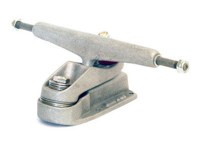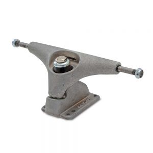The CX truck is a single -axis truck with a precision pivot pin which allows for very snappy turns, like riding a thruster surfboard, and replicating the quick response you feel as you pump for speed. The single axis permits one axis of adjustment before a different shape or hardness of bushing is needed. It’s the same weight as a standard truck, but the simpler, lighter truck design is better for airs, skate parks and transition.